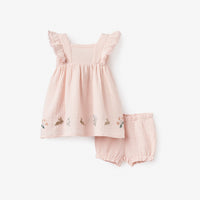 Blush Pink Garden Picnic Embroidered Organic Muslin Dress w/ Bloomer | PINK / 3-6M | 96322 | ||
