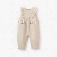 Natural Linen Floral Embroidered Jumpsuit | FLAXSEED / 6-9M | 96427 | ||