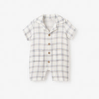 Plaid Organic Muslin Shortall | BLUE / 6-9M | 96469 | ||
