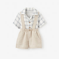 Plaid Organic Muslin Top & Linen Suspender Shorts | MULTI / 9-12M | 96473 | ||
