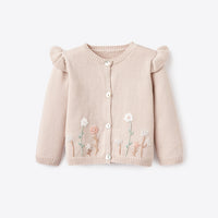 Taupe Flutter Sleeve Hand-Embroidered Baby Cardigan | TAUPE / 9-12M | 91006 | ||