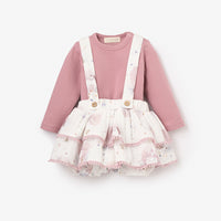 Fairytale Wonderland Organic Muslin Ruffle Bloomer with Straps & Bodysuit | MAUVE / 6-9M | 96413 | ||