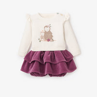 Owl Knit Sweater and Velvet Skirt Set | DARK VIOLET / 12-18M | 96495 | ||