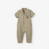 Linen Blend Patch Jumpsuit | OLIVE GREEN / 3-6M | 96450 | ||