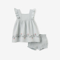 Aqua Embroidered Organic Muslin Dress w/Blmr | AQUA / 9-12M | 96141 | ||