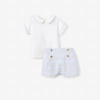 Blue Gray Plaid Trimmed Collar Shirt & Short Set | BLUE / 12-18M | 96936 | ||