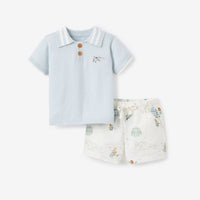 Up & Away Knit Polo Shirt + Printed Oxford Shorts | BLUE / 12-18M | 96893 | ||