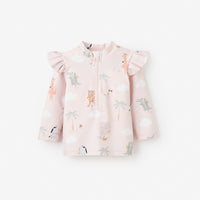 Pale Pink Flutter Sleeve Seaside Safari Baby Rash Guard | PINK / 9-12M | 49009 | ||