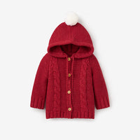Red Chunky Hooded Pom Pom Cardigan | RED / 9-12M | 90986 | ||